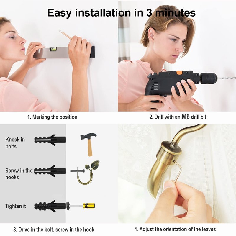 - 【Easy to Install】 Made from 100% aluminum alloy, our Handicraft Curtain Holder for Drapes are sturdy and never rust. We provide colored installation instructions and a complete installation set, including screw*4, screw plug*4, and a tool 🔧 to adjust the direction of the leaves.⚒️