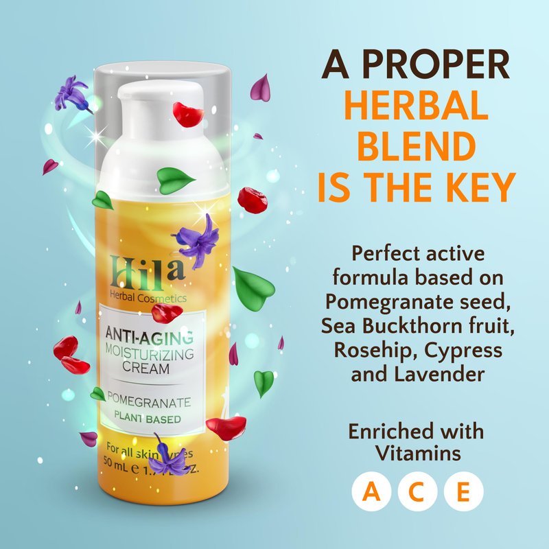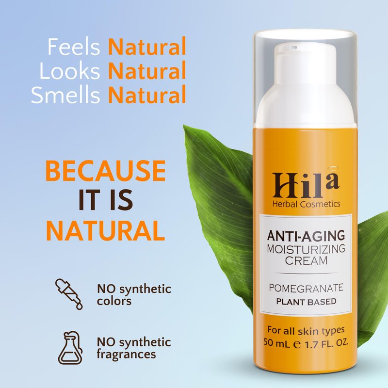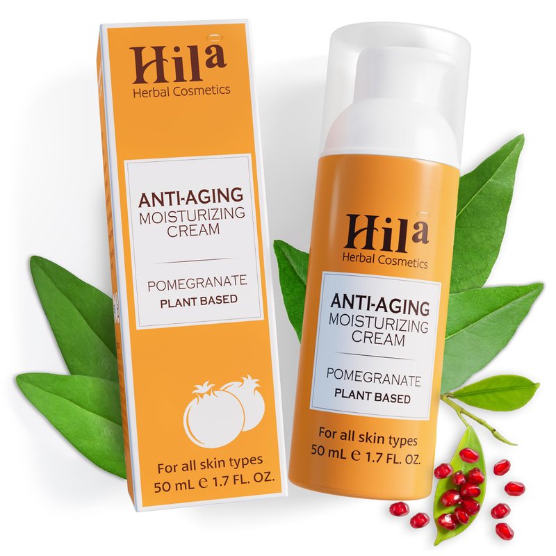 Hila Herbal Cosmetics Anti Aging Moisturizing cream - Pomegranate plant based - Vitamin E, C, & A, Anti Aging Cream - Skin Firming & Tightening Face Moisturizer - 50ml