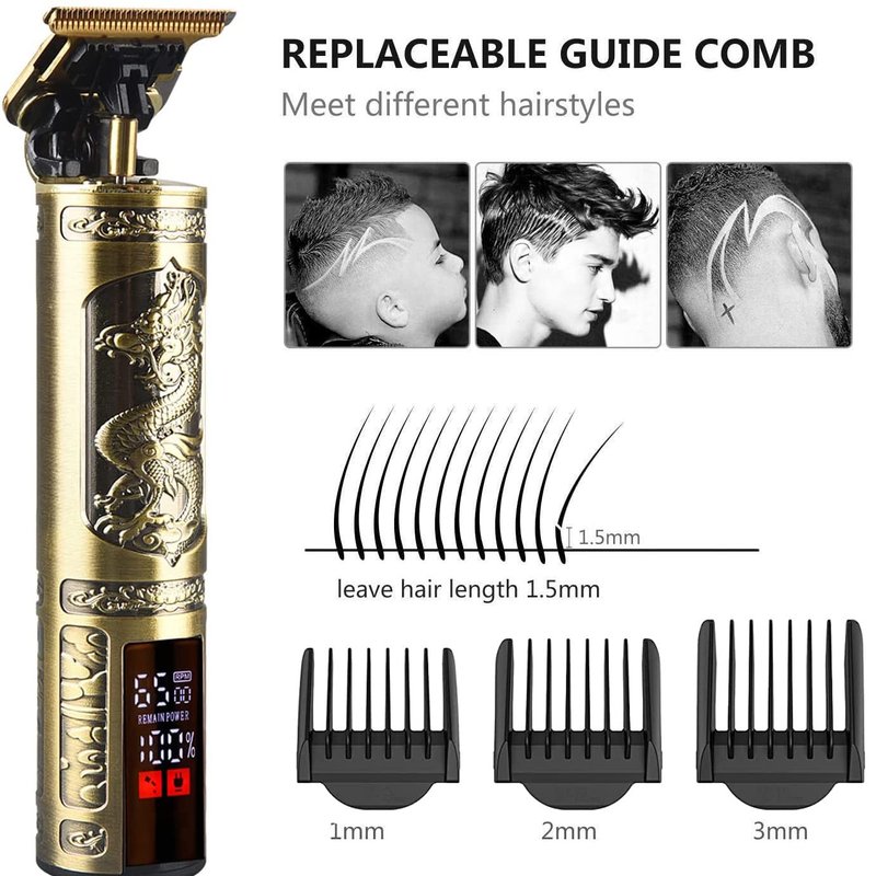 Hilandkom Hair Clippers for Mens Cordless Hair Trimmer T-Blade Trimmer Professional Haircut & Grooming Kit Rechargeable Edgers Clippers Hair Trimmer Shaver Cutting Kit with LCD Display (Led-Dragon)