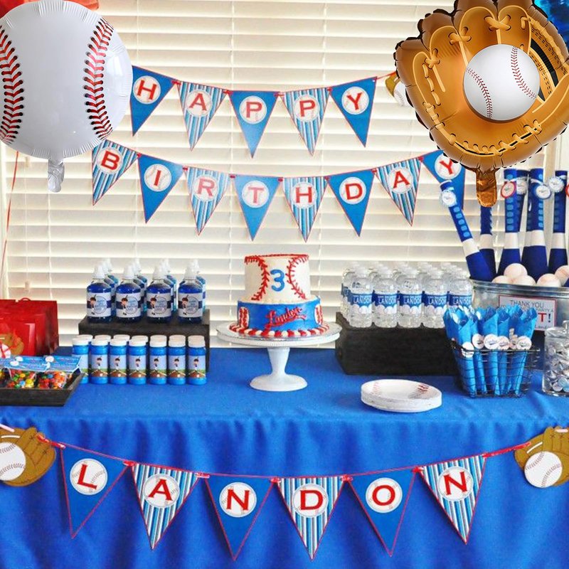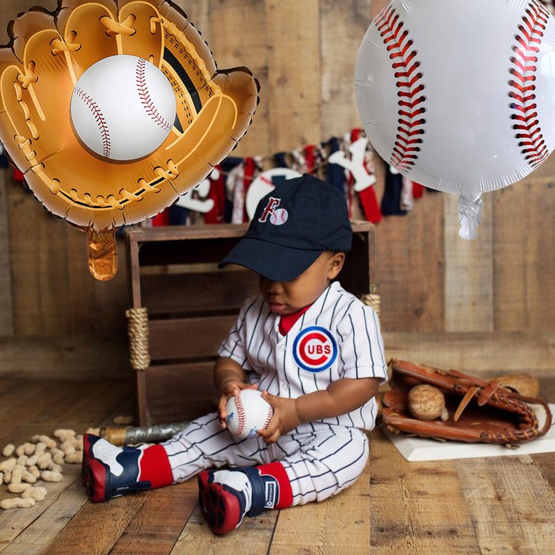 - Baseball Foil Balloons: This set includes 3PCS 18-inch baseball foil balloons and 3PCS 18-inch baseball glove balloons. The realistic prints on the 4D round shape make the balloons look especially like real baseballs, giving people the feeling of being in a baseball game. A must-have baseball birthday party decorations for baseball-themed parties.