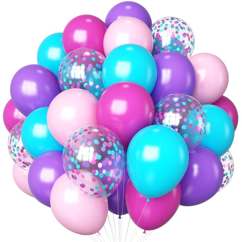 HILAVO Pink Purple Blue Balloons 60 Pcs Hot Pink Light Pink Teal Purple Latex Balloon Pastel Purple Teal Pink Confetti Balloons for Kids Magic Theme Mermaid Princess Birthday Baby Shower Party Decor
