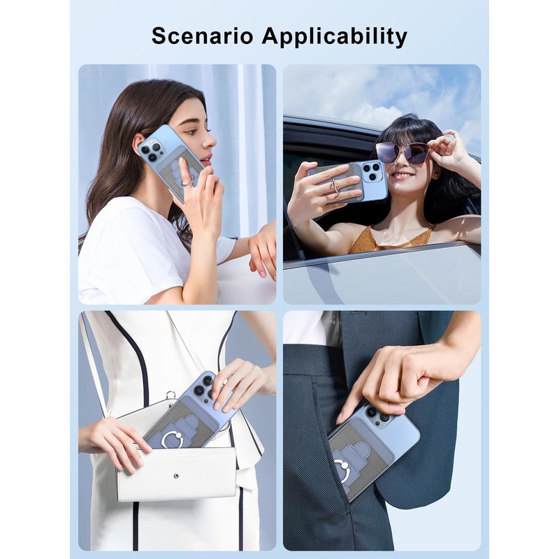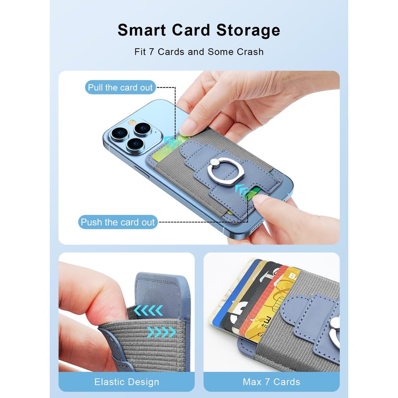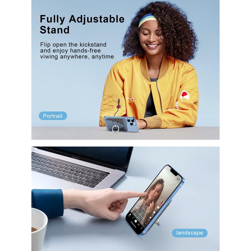 - 【Flexible 360° Rotation Phone Grip】 Magsafe card holder wallet for iPhone is a new 2 in 1 design with a combination of credit cards holder and 360 degree rotation phone ring stand. The magnetic wallet allows you to easily hold cards and money. The finger ring can grip your phone more comfortable and safe. It works flawlessly as a grip or a handy kickstand when watch your favorite shows, Facetime your family, or browse the web.