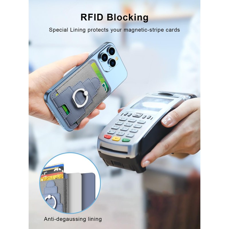 - 【RFID/NFC Protection】MagSafe wallet card holder is equipped with advanced RDIF blocking technology, which can block 13.56 MHz or higher RFID signals to keep your credit cards safe from unauthorized scanners and provides degauss protection for your cards to prevent demagnetization. It keep your identity and properties safe when you go shopping, traveling, working.
