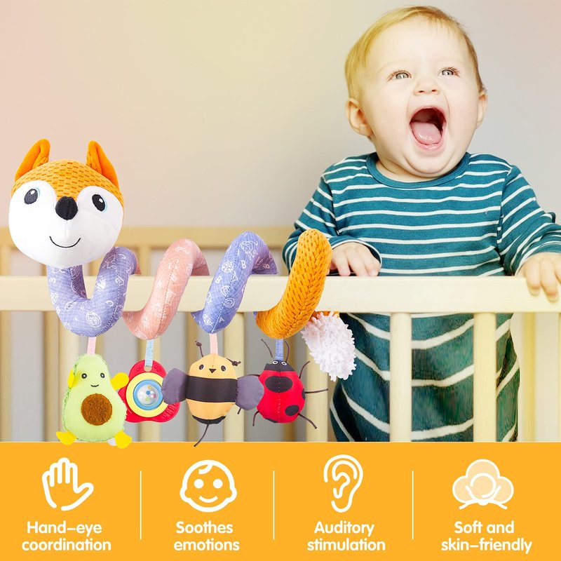 - ♫ Multi-Use - Easy to spiral the fox plush toys on car seat, stroller bar, crib rails, baby carrier, bassinet and shopping cart handles,etc.