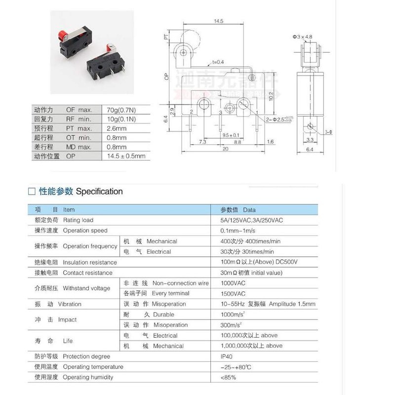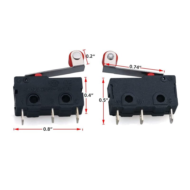 - KW12-3 Roller Lever Arm Micro Limit Switch, Normally Open and Close Diamension: 20 x 10.5 x 6.5mm (L x W x H)