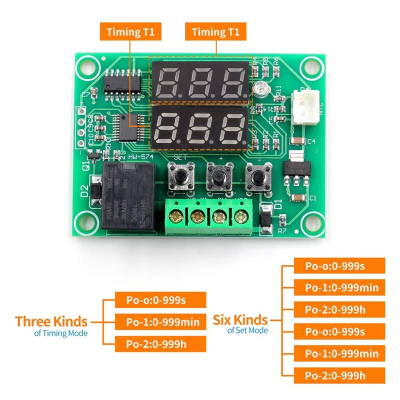 3. Long press button SET: if you start the parameter setting mode. There are two group parameter for your choice : P0 and P1. You could switch P0 or P1 by short press SET. Under the parameter P0 and P1,you could set the timing mode by the button+ and button-.