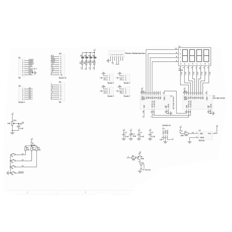 - Four digital (using 74HC595 driver provincial IO learning SPI), you can do digital display test (can display temperature, voltage, counter value, etc.).