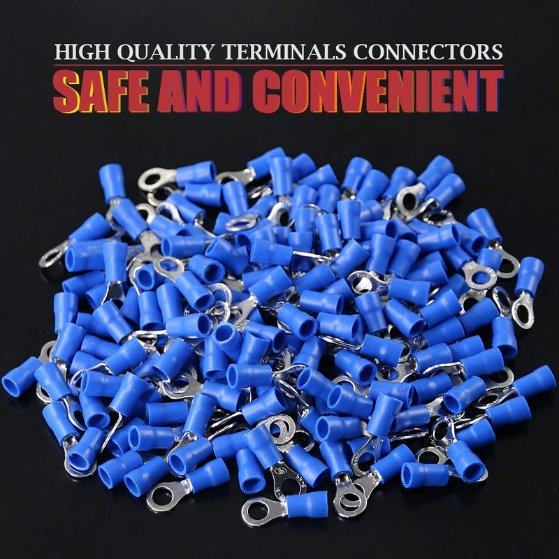Hilitchi 100Pcs 16-14AWG Insulated Terminals Ring Electrical Wire Crimp Connectors (Blue, M5)