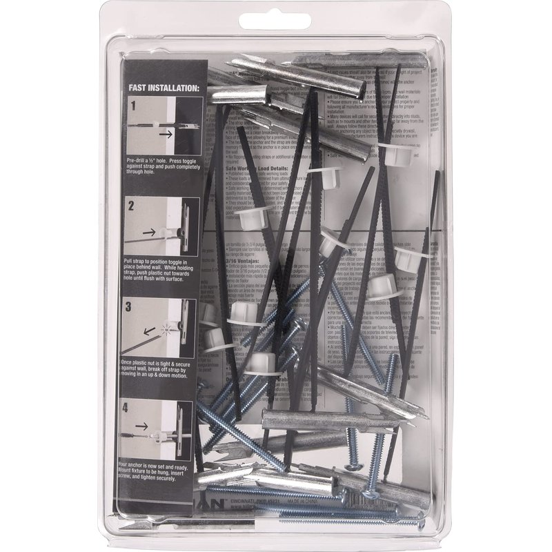 - INDOOR USE: The toggle bolt is intended for use in indoor settings and comes with 24 heavy duty toggle anchors/screws