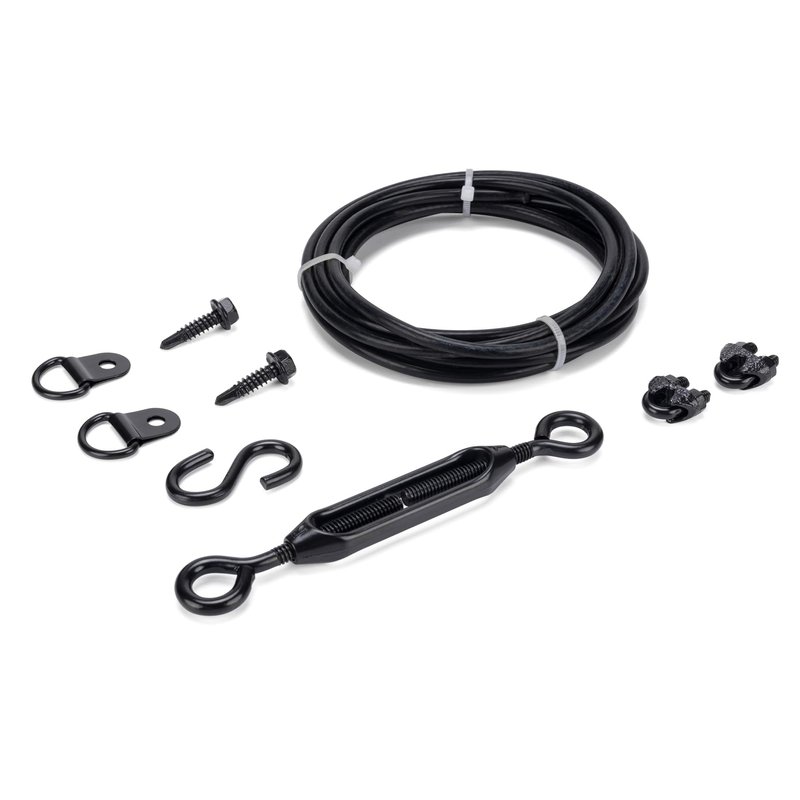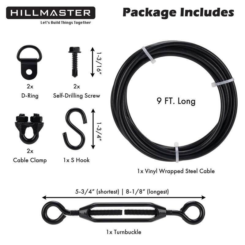 - 【Instant Installation】You can cut the length freely you want with wire cutters, just attach the turnbuckle to the D-ring, attach a cable clamp and tight nuts as tight as possible, twisting the center ring of the turnbuckle, turnbuckle is adjustable. Instant installation with detailed instructions without extra tools.