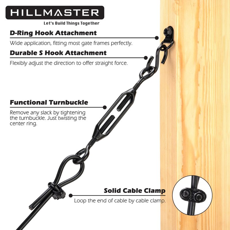 HILLMASTER Durable Anti-Sag Gate Kits for Wooden Fence, Gate Support Cable Kit in Zinc, Anti-Sagging Fence Gate Kit Steel, Wood Door Repair Kit for Outdoor, Black