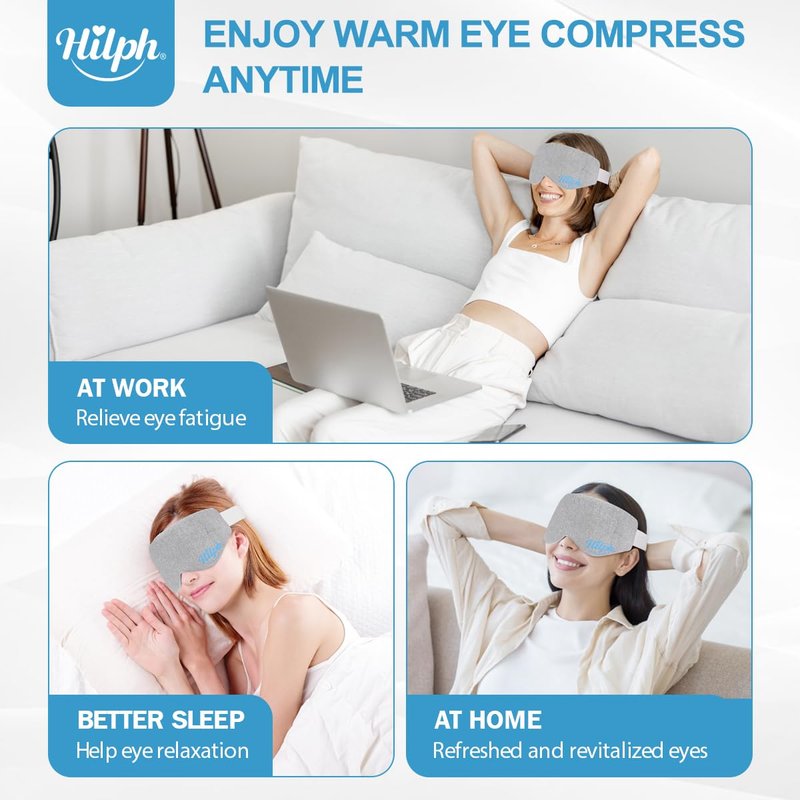 Hilph Microwave Warm Eye Mask for Dry Eyes, Heated Eye Mask Moist Heat Warm Eye Compress for Blepharitis, Styes, Tired Itchy Eyes, Eye Strain, Fatigue Eye Treatment (Grey)