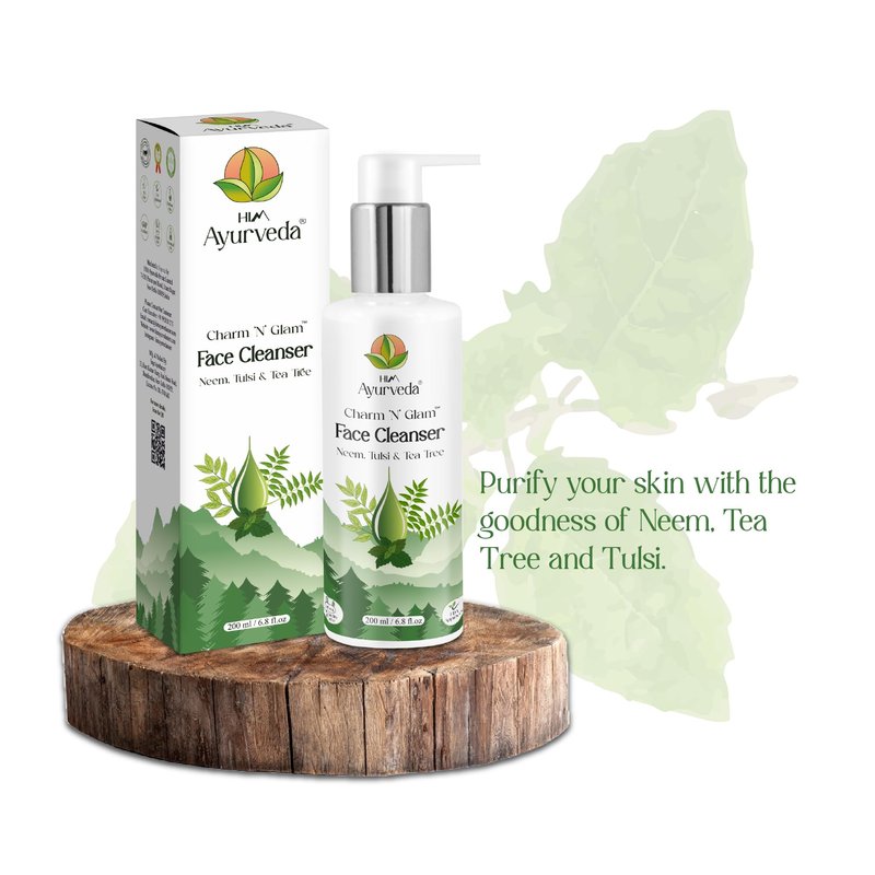 HIM AYURVEDA Charm N Glam Face Cleanser(Face wash) organic Face wash blended with Neem,Tulsi,Tea Tree and other 15+ natural and Ayurvedic Herbs for Purified skin.-200ML