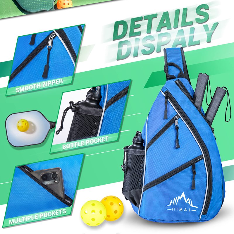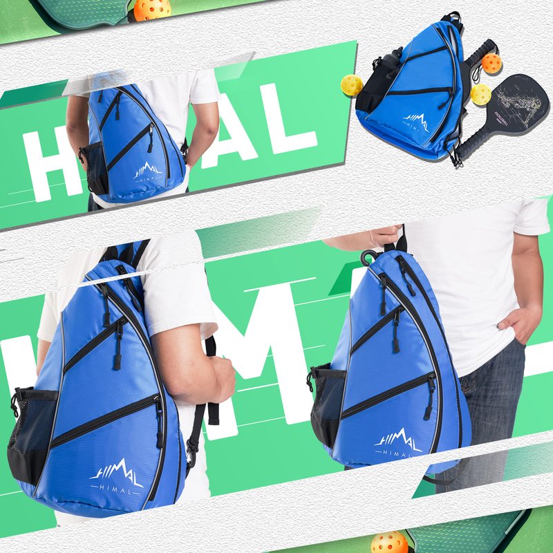 HIMAL Pickleball Bag-Adjustable Pickleball,Tennis,Racketball Sling Bag-Pickleball Backpack with Water Bottle Holder for Men and Women,Blue