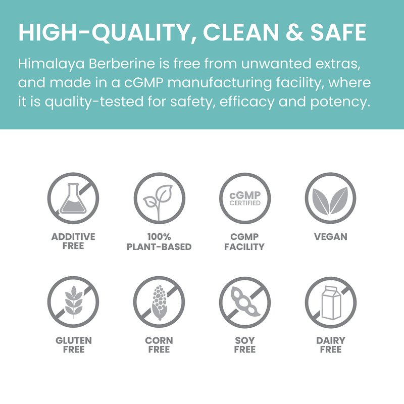 - QUALITY & SAFETY: Himalaya Berberine is produced in a cGMP Good Manufacturing Practices certified facility and rigorously tested for identity, strength and safety using well recognized techniques and highly sophisticated instruments, from a brand trusted since 1930.