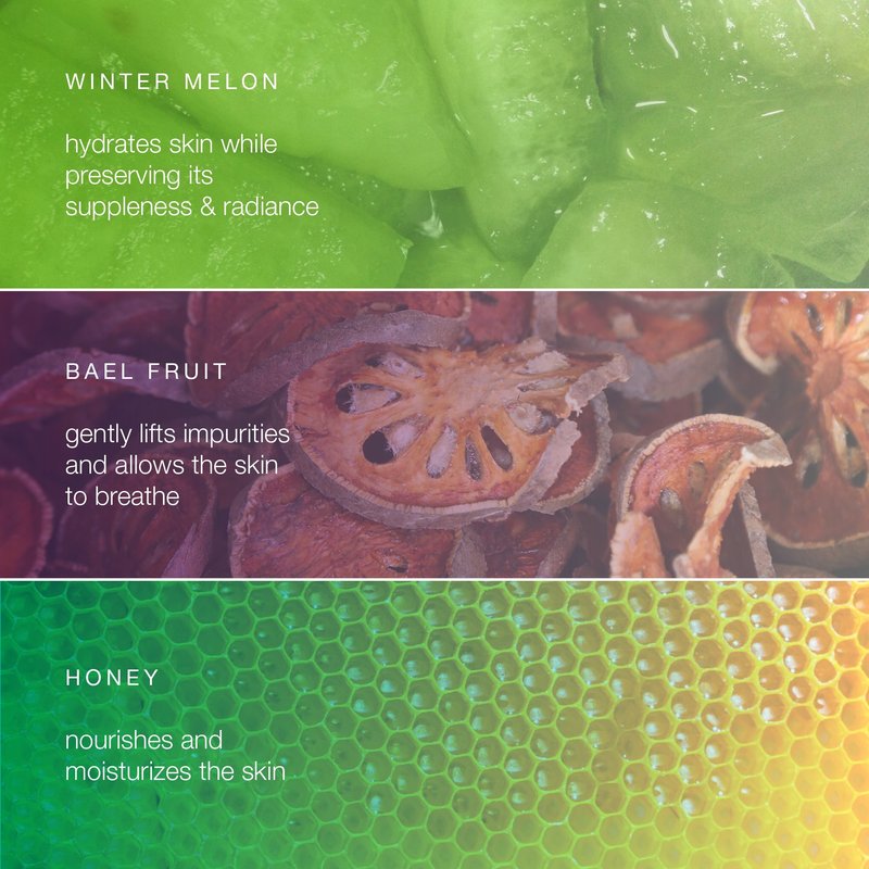- LIFTS IMPURITIES, MOISTURIZES, REFRESHES AND MORE: Bael Fruit lifts impurities, Organic Aloe Vera moisturizes your skin, Organic Winter Melon supports your skin’s elasticity and Cinnamon invigorates your skin, while Lavender oil soothes and refreshes.