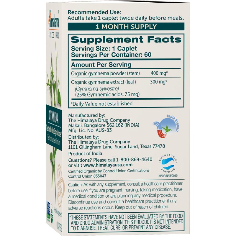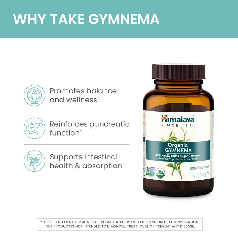 Himalaya Organic Gymnema Herbal Supplement USDA Certified Organic, Non-GMO, 700 mg, 60 Plant-Based Caplets, 30 Day Supply