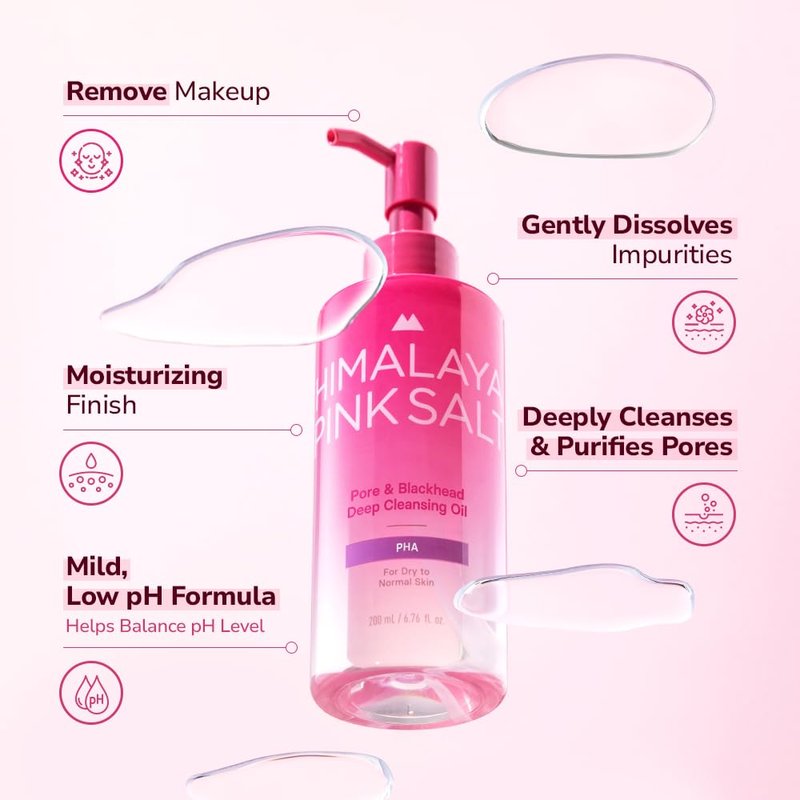- Enriched with Himalayan Pink Salt: Infused with precious Himalayan Pink Salt, known for its purity and rich mineral content, this oil cleanser deeply purifies pores while promoting healthy, glowing skin