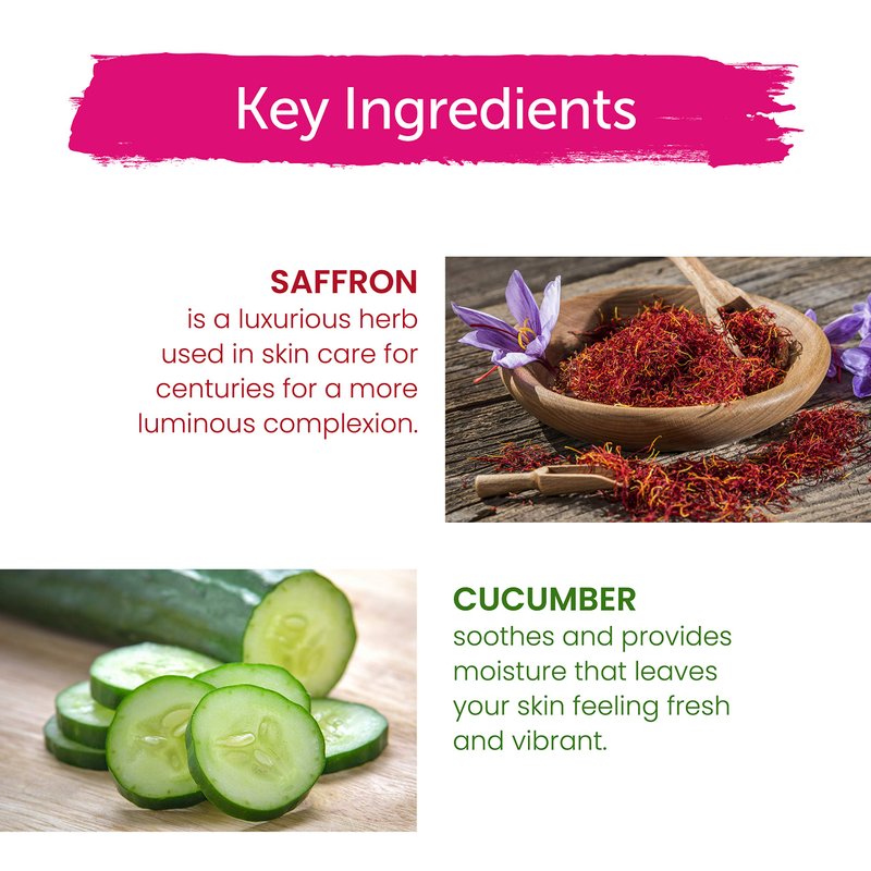 - WITH SAFFRON & CUCUMBER: For a fresher, smoother complexion and for toning and tightening pores while leaving your skin soft and smooth