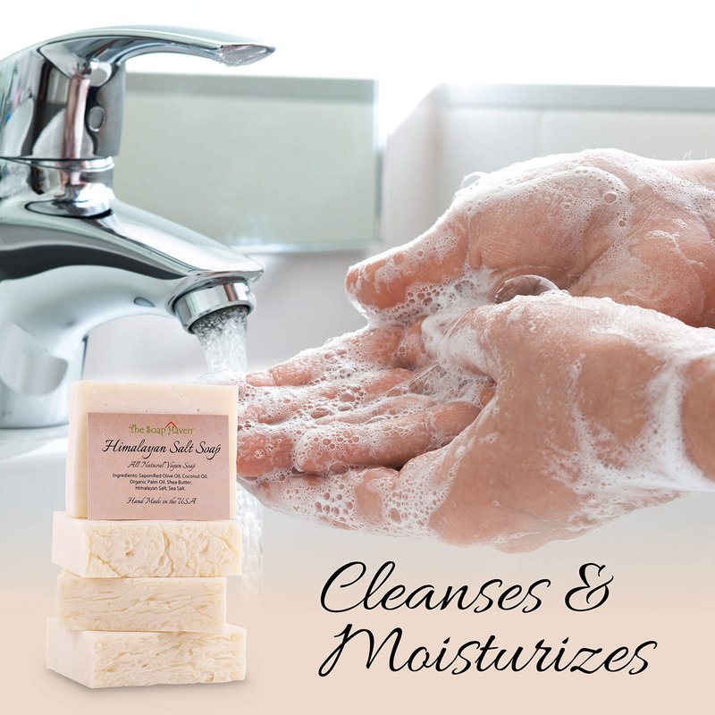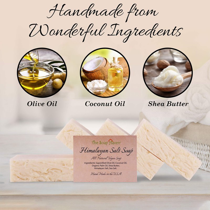 - This is 4 Himalayan Salt SOAP bars, NOT a block of salt! All Natural Olive Oil, Coconut Oil, Organic Palm Oil and SHEA BUTTER SOAP is infused with HIMALAYAN SALT and SEA SALT for an AMAZING SOAP!