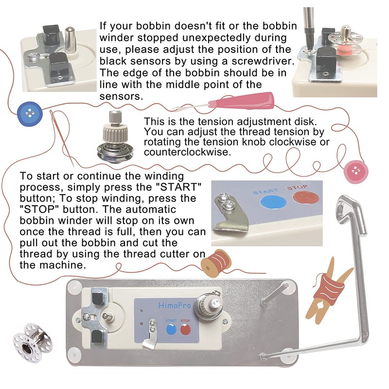 HimaPro Automatic Bobbin Winder for Sewing Machine Electrical Bobbin Winder Electric Bobbin Winder - Adjustable Bobbin Slot - Fast and Efficient Winding Experience