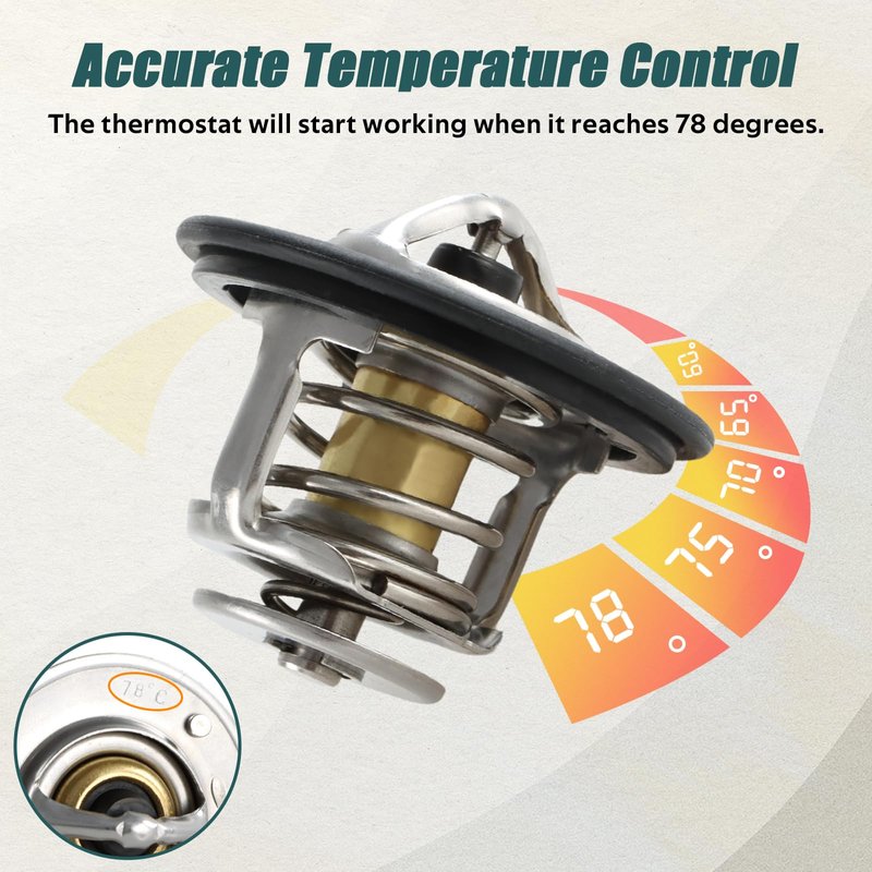 - 【Accurate Temperature Control】The temperature range is 78 degrees Celsius, when it reaches this temperature, the thermostat will start working. It ensures precise temperature control of the vehicle, allowing you to maintain the optimal temperature of the engine and other components, thereby improving performance and fuel efficiency.