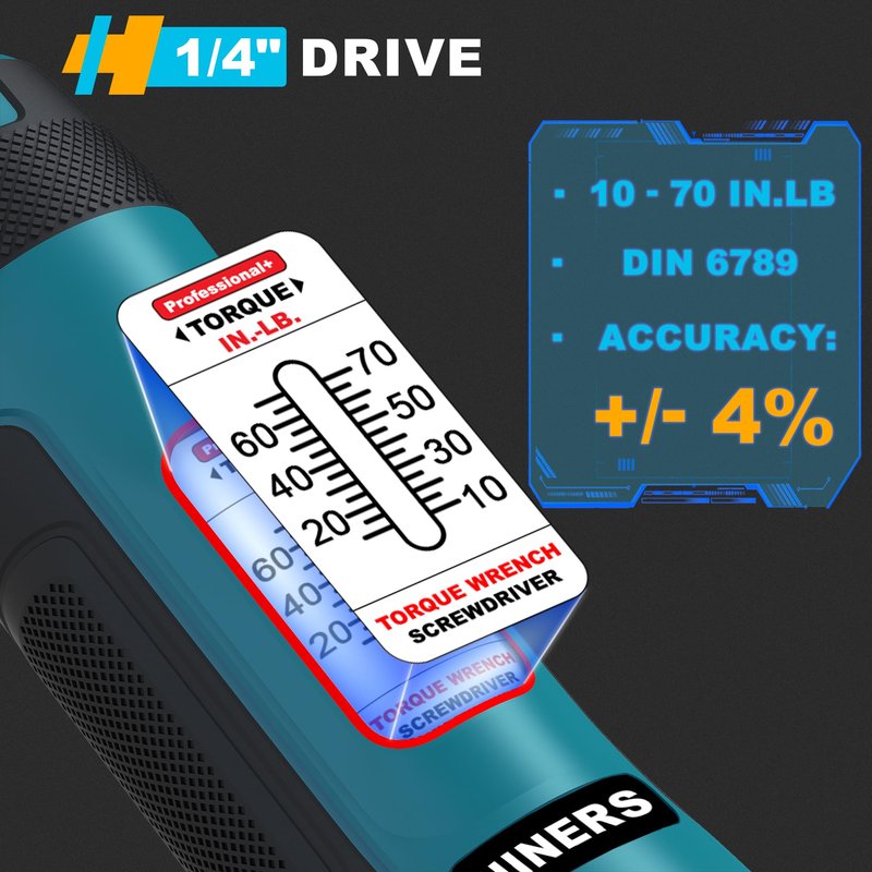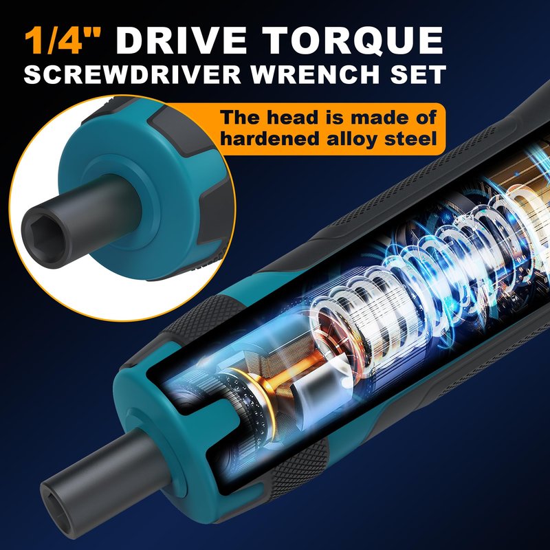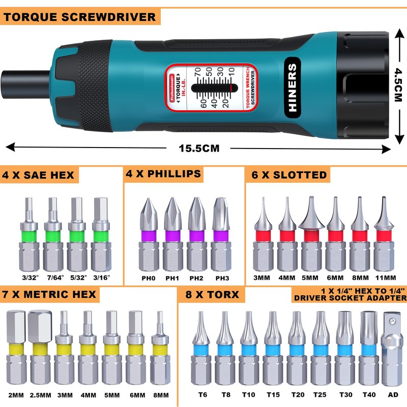 Hiners 1/4 Inch Torque Screwdriver Wrench Set, 10-70 in.-lb., 31 Pcs Torque Wrench Bits Set Blue