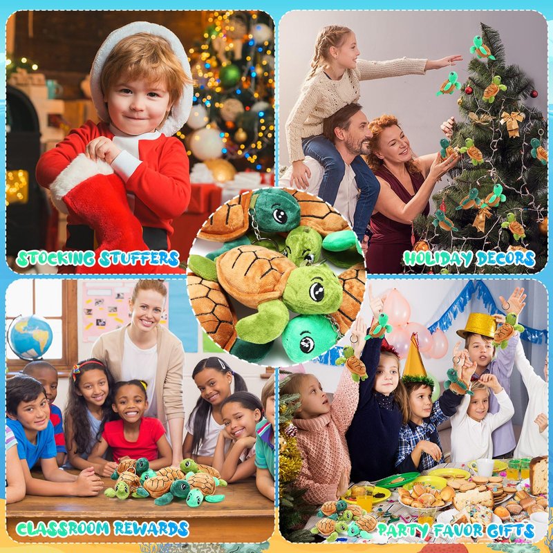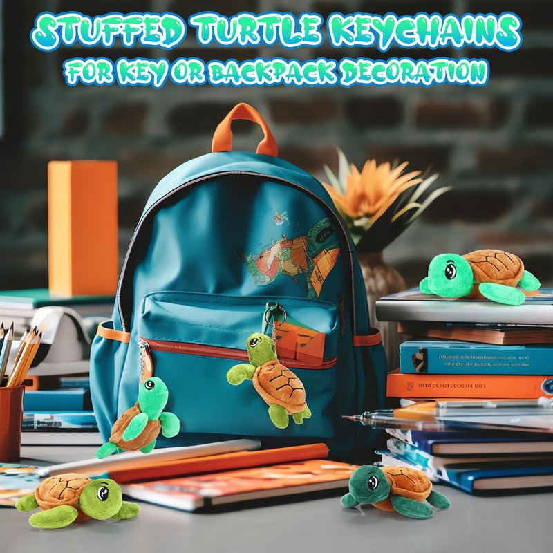 - Lightweight and Portable: the size of this plush turtle is about 5.5 inches/ 14 cm, small and lightweight, easy to carry without taking up much space; There is a keychain on the top of each turtle plush, which allows you to hang it on your keys rings, backpacks, suitcases, purses, car mirrors, Christmas trees or anywhere else you like