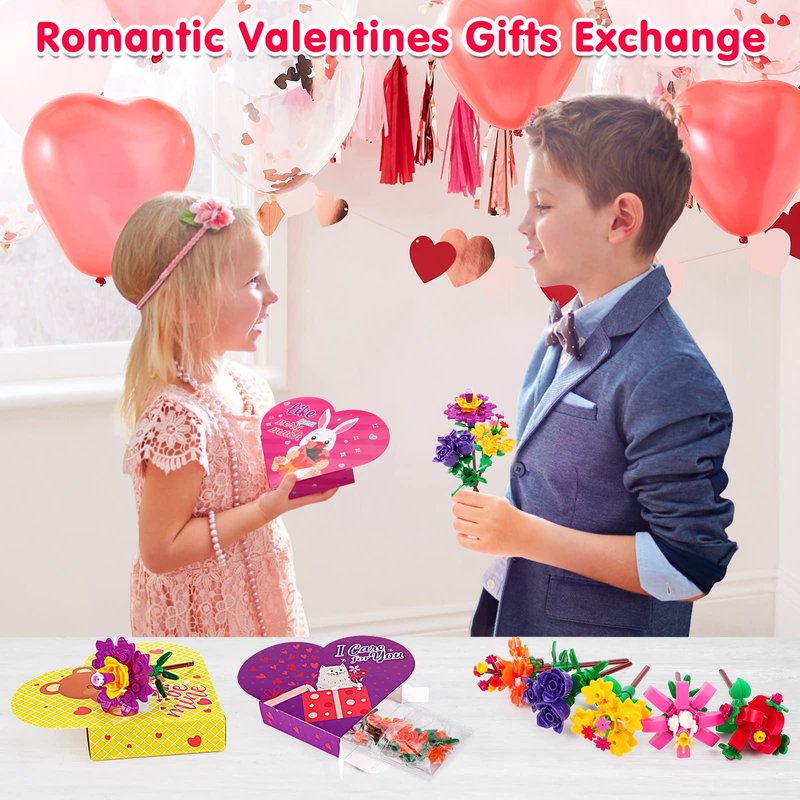 Valentines Day Gifts for Kids Classroom Valentines exchange Cards for Kids Flowers Buidling Blocks Buidling Kits for valentines day valentines kids classroom favors valentines party favors classroom gifts classroom exchange for kids boys girls