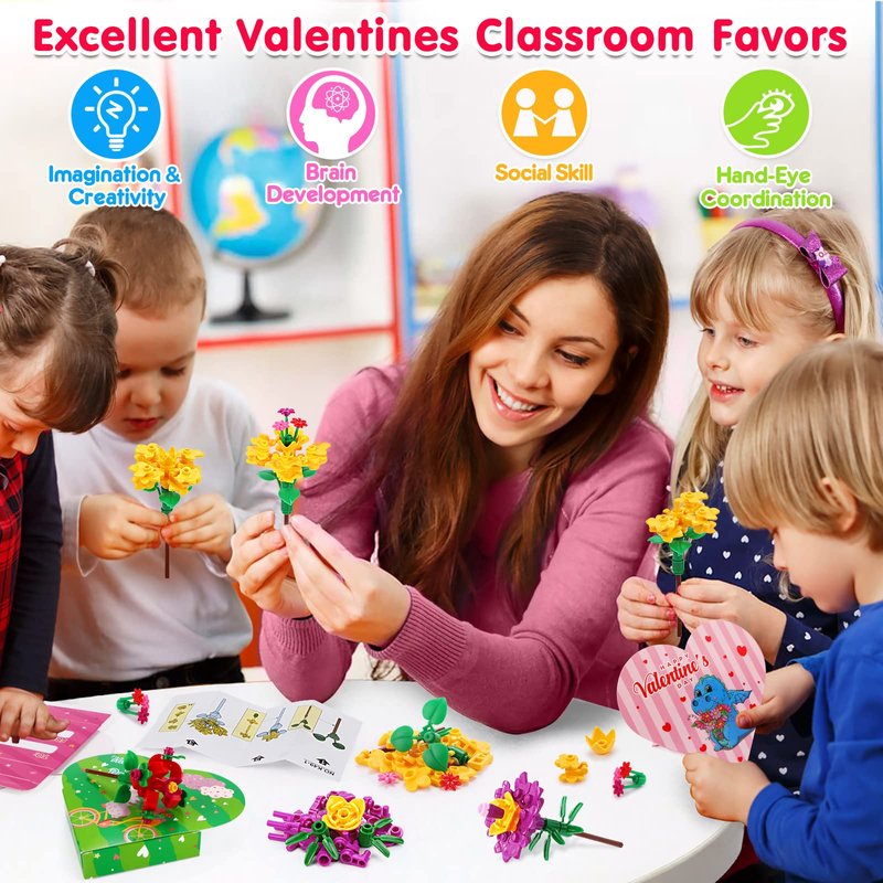 - Excellent Valentines Classroom Favors: All kids love building lovely blocks. Why not take this flowers building kit to the classroom, teach your students to make their own flowers? They will get great joy and satisfaction when finishing. Exchange with each other, better promote social skills. A big hit for class event, school classroom rewards or classroom gifts for students.