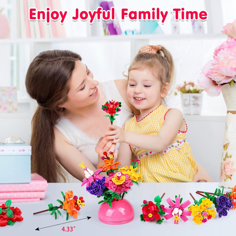 - Enjoy Joyful Family Time: Each comes with instructions, you can assemble the flower blocks without difficulty. Create a stunning artwork with your kids, greatly enhance parent-child interaction. Experience the fun of life that electronic devices can't bring. Better develop your kids' creativity & imagination and hand-on ability.What an interesting small Valentine's gift for kids!