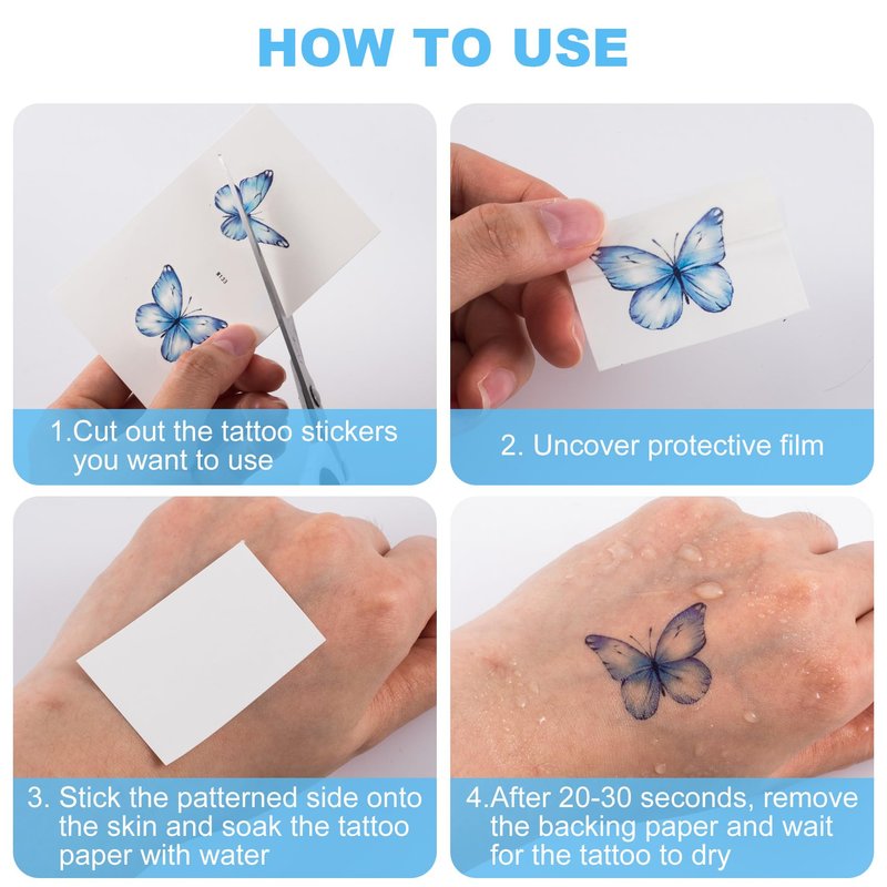 - 【Waterproof & Easily Removeble】These butterflies temporary tattoos are water-resist. They can be removed easily with baby oil, cooking oil, rubbing alcohol or makeup remover. Safe to wear at the beach, in the shower or at the pool.