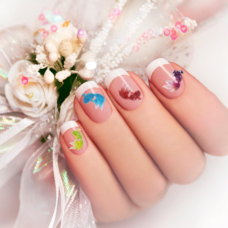 HINZIC 144Pcs Kawaii Fish Nail Charm White Pink Light Purple Red Blue Black Yellow Green Mermaid Koi Fish Dangle Lucky Wedding Prom Engagement Accessories for Scrapbooking Phone Case Doll House Decor