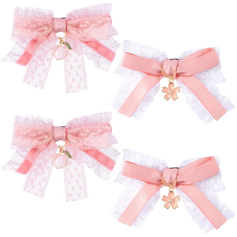 HINZIC 4Pcs Pink and Lace Hair Clips, Cute Bow Alligator Clips Pink Peach Bow for Girls Hair Flower Peach Pendant Barrettes Hair Bow Clips Hair Decoration for Girls Women Teenage