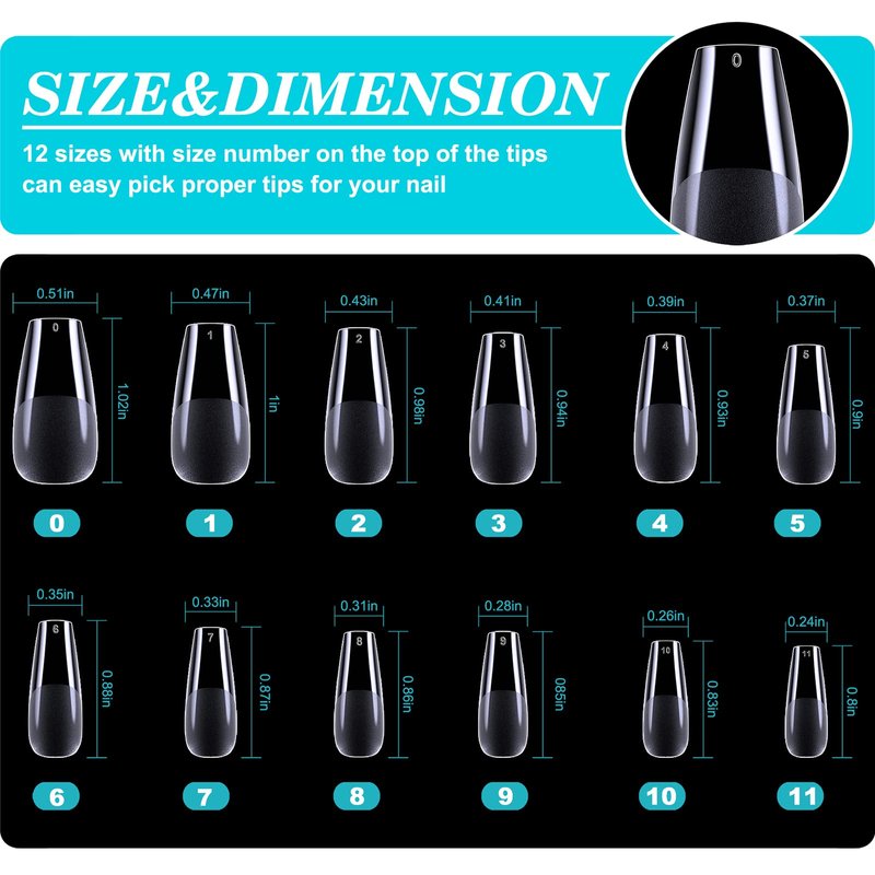 - [12 SIZES MEET DIFFERENT NAIL SIZES] - There are 12 different sizes of soft gel nail tips. No matter how big your nails are. you could find one suitable full cover nail tips for you. The number is marked on the tip and easy to find the right nail for you quickly.