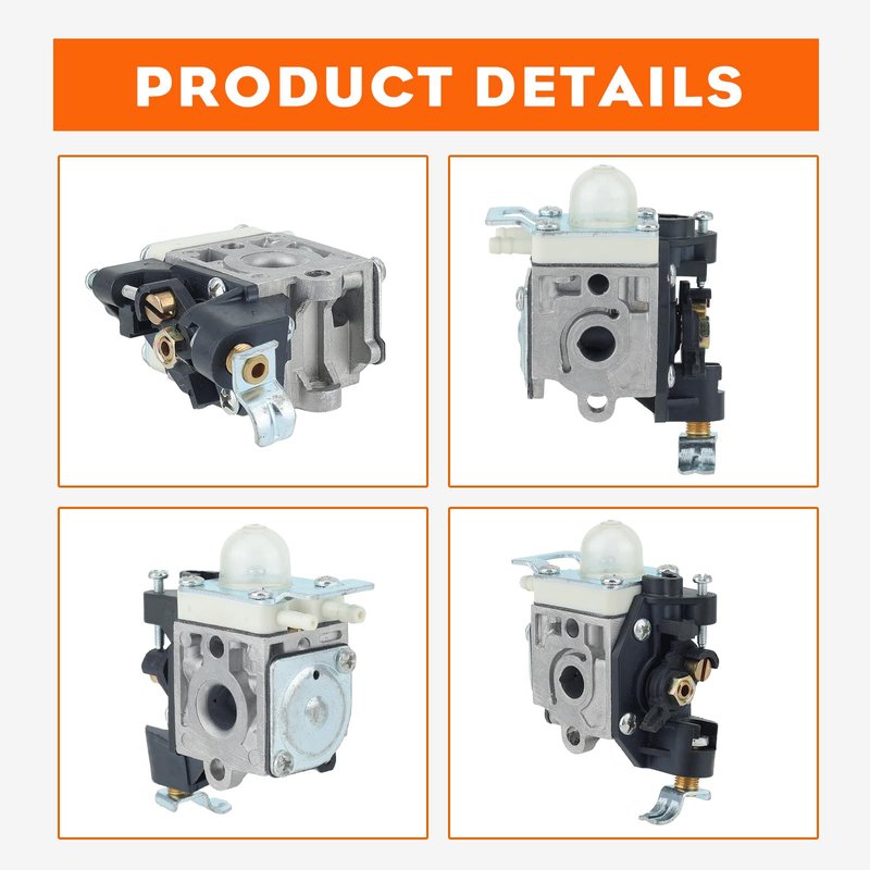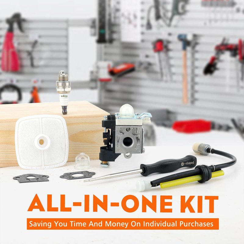 - Package include:1 carburetor, 2 gaskets, 1 primer bulb, 1 Cleaner, 1 tube assembly, 1 spark plug