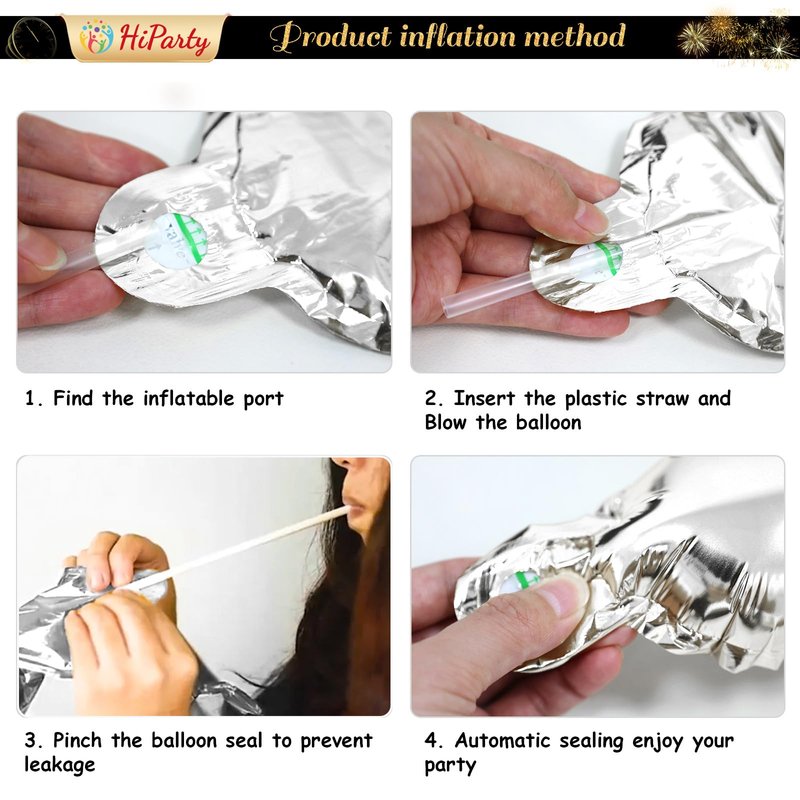 - 🌈【Premium Quality Materials】Made from top-quality aluminum foil, our Silver balloons are durable and long-lasting. They won't easily deflate or lose their shape, ensuring your decorations stay vibrant throughout the entire New Year's Eve party. Light and sturdy, just fill with 90% helium to float. Self-sealing and reusable, you can use the straw to deflate the balloon after the party.