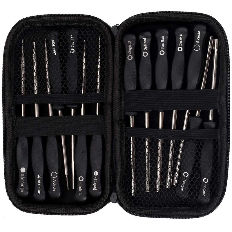 With a carrying case to protect the tools, also to keep all the screw drivers from scattering around, easy to have all the 14 tools organized in one place.