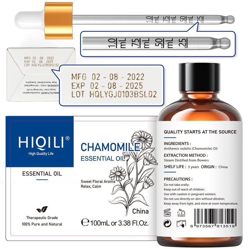 HIQILI Chamomile Essential Oil, Pure Natural Chamomile Oil for Diffuser, Aromatherapy - 3.38 Fl Oz