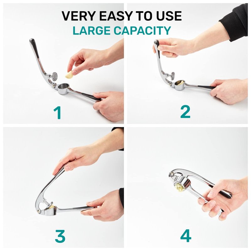 - ★ LARGE CAPACITY & VERSATILE: Large chamber and dozens of small holes maximize the amount of garlic pressed. You can use it not only for garlic, but also for ginger, onion, soft nuts and small seeds. A perfect idea for gifts and kitchen decoration.