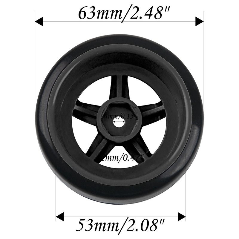 - 2.Size Info: Tire Outer Diameter: 63mm/2.48",Tire Width: 26mm/1.02"; Tire Inner diameter: 53mm/2.08";Wheel Drive Hex: 12mm/0.47"; Axle Hole Diameter: 4mm/0.15".
