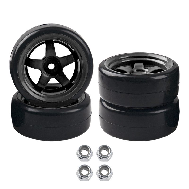 HIRCQOO 5-Spoke RC 12mm Hex Hub Wheel Rims & Rubber Tires Compatible with HSP Tamiya HPI Kyosho 1/10 On-Road Touring Car,WLtoys 1/14 144001 Traxxas 1/16 Slash RC 1/18 A959B Buggy (Black)