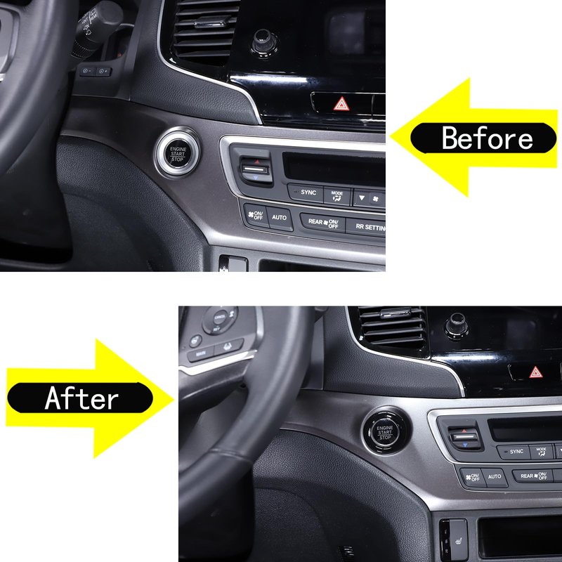 HIRUFAIT Engine Start Stop Switch Button Frame Trim for Honda Pilot 2016-2022/ Ridgeline 2017-2023/ Passport 2019-2023, ABS Material Start Stop Push Button Ring Sticker (Glossy Black)