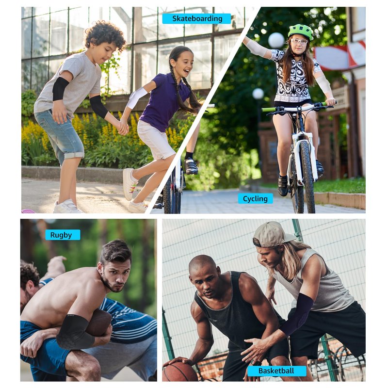 - Versatility for All Activities: These elbow pads are suitable for a wide range of sports and outdoor activities, including basketball, baseball, soccer, football, tennis, running, cycling, and more. They are lightweight, flexible, and breathable, ensuring unrestricted movement.