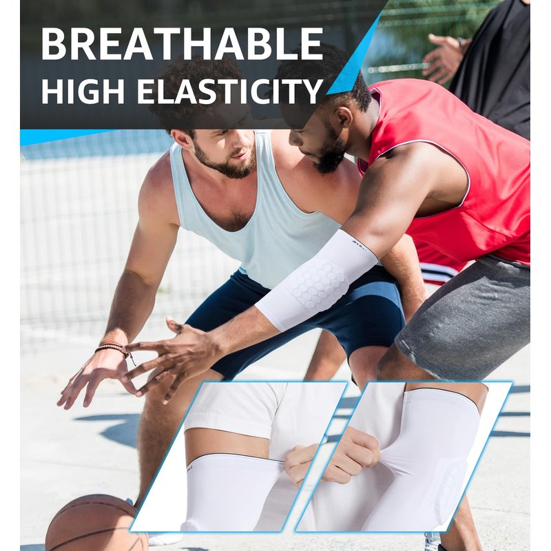 - Maximum Protection and Enhanced Arm Support: Crafted from highly elastic fabric with thick honeycomb padding, these elbow pads effectively shield elbows from impacts and abrasions while regulating body temperature and enhancing blood flow. They aid in muscle recovery, provide mild pain relief from overuse, and serve as a protective base layer, offering additional comfort and shielding against minor scratches. Ideal for anyone requiring extra arm support during physical activities.