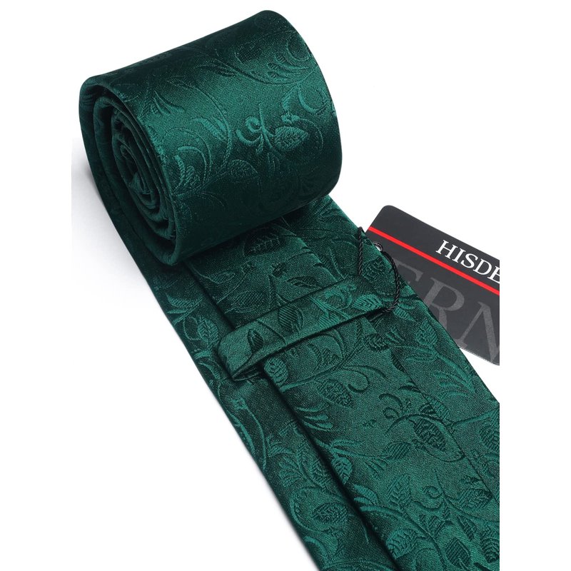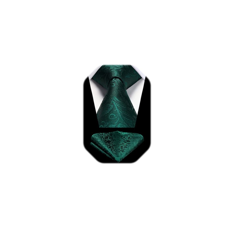 HISDERN Green Mens Tie Paisley Floral Ties for Men Solid Classic Formal Handkerchief Men's Neckties and Pocket Square Set Tuxedo for Wedding