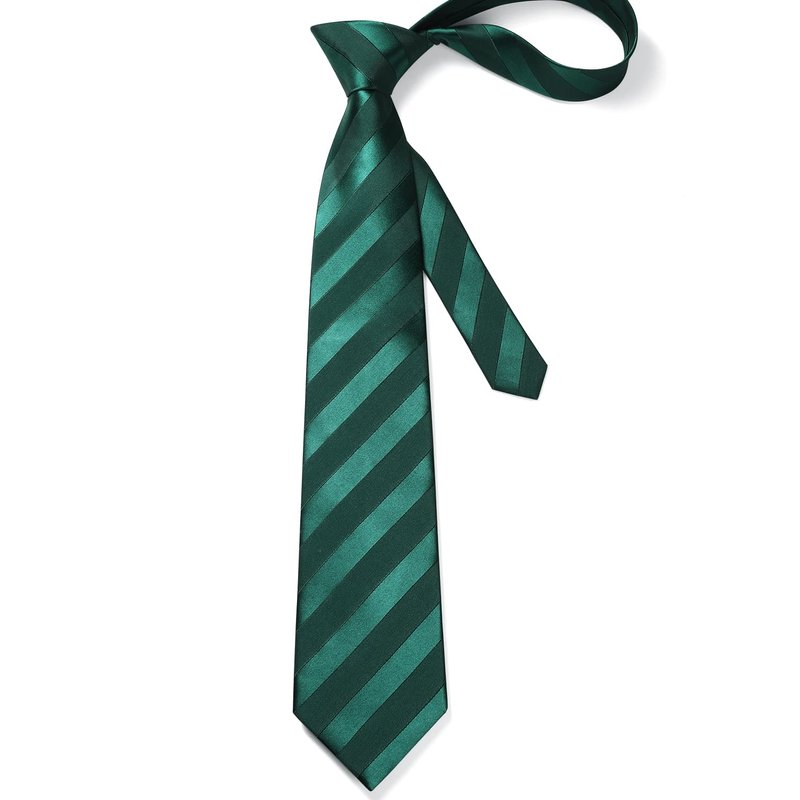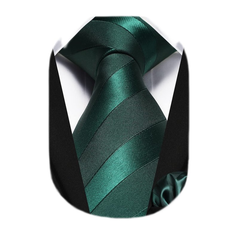 HISDERN Ties for Men Green Tie Handkerchief Set Dark Green Striped Formal Woven Emerald Pocket Square Wedding College Striped Necktie Christmas