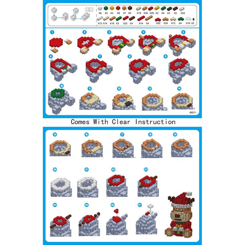 - How to play the Christmas building blocks. Our micro blocks are composed of a variety of different shapes, each of which has a fixed number. According to our operating steps, through the bite of the teeth lines between micro blocks and the protrusions on them, you will finally get a great Christmas crafts. Build blocks are recommended that you follow the instructions when assembling Christmas building blocks to avoid difficulties in disassembly during rework