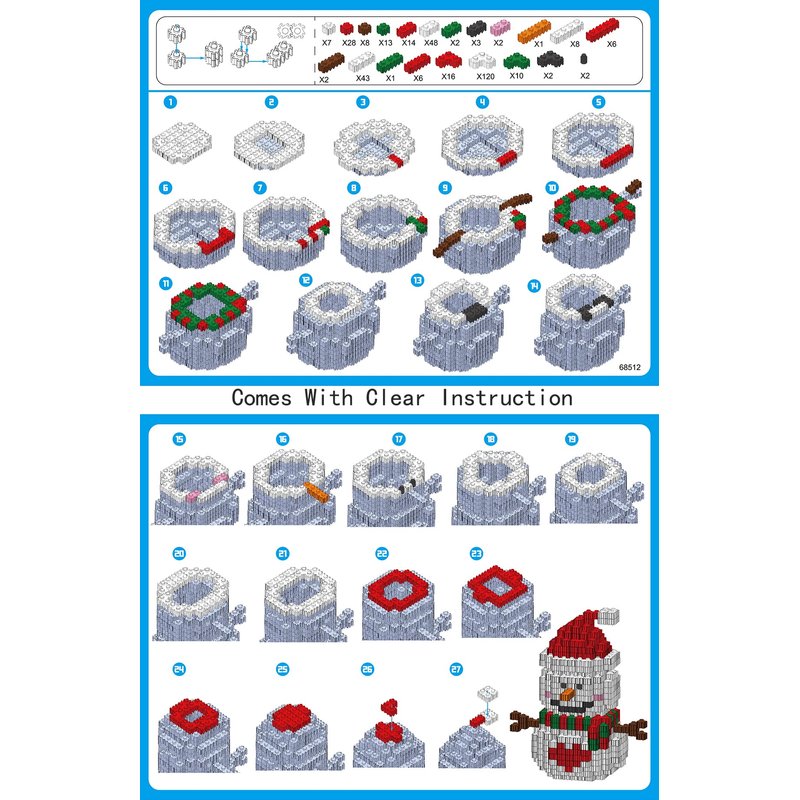 - Classic Buildable Christmas Toys Very Challenging Christmas Gifts.This Christmas snowman model latest Christmas building toy! Full of exquisite details, Ground edge treatment and will not hurt the hand One of the top quality of building blocks in the market.Total micro blocks 374 Pcs.