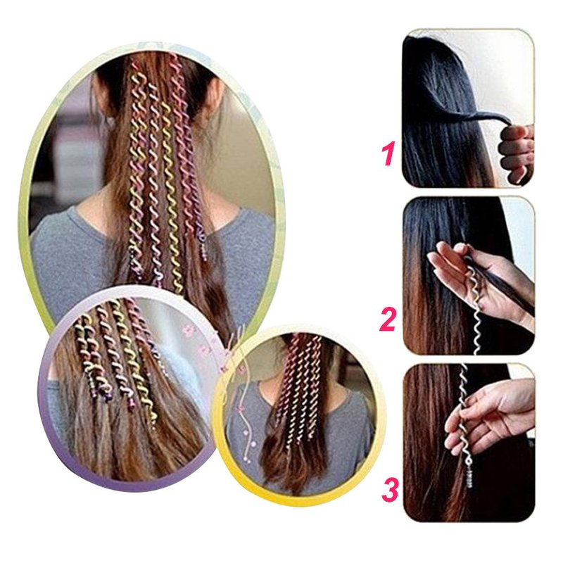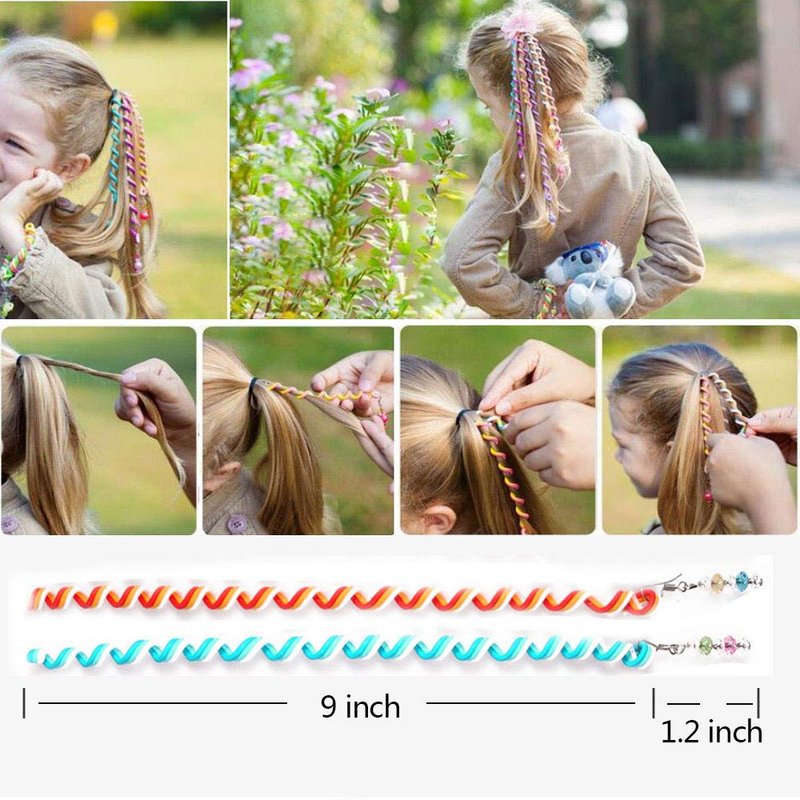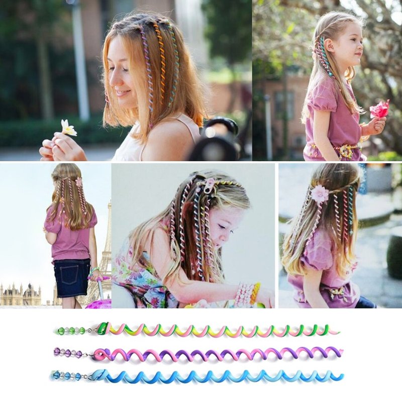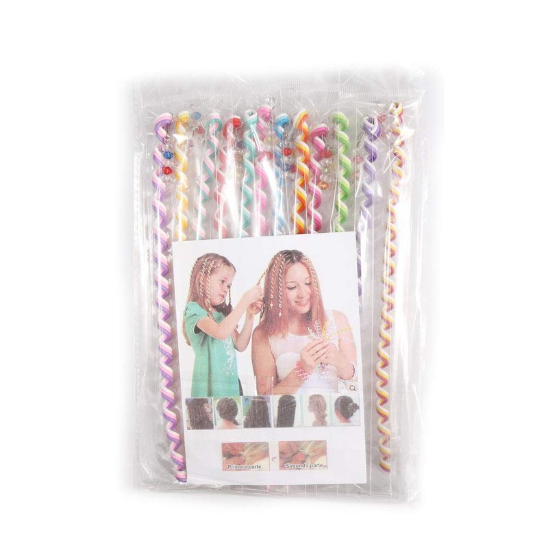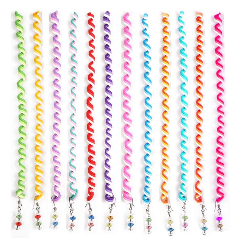 Hisight 12pcs Spiral Hair Rope Women Girl Hair Styling Twister Clip Hair Headwear with Crystal Pendant DIY Braider Tool Beaded Party Favor Hair Design Rainbow Roller Curler. (Trichromatic Mixture)